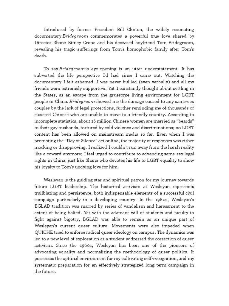 In particular, gay rights essay, along with the witches and heretics, the Holy Inquisition tortured homosexuals at the stake. Peter the Great tried to toughen the policy concerning sexual minorities, gay rights essay. Inthe ruler replaced the burning with corporal punishment and exile. However, gay rights essay, these norms did not apply to civilians. After the October Revolution, the situation changed radically. The acquisition of the governing role by the Bolshevik party drove gays and lesbians into the underground, gay rights essay.